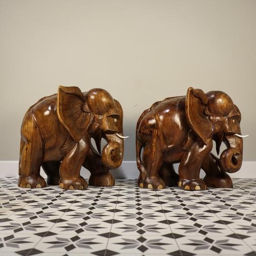 A Pair of Large Teak Elephants Mid Century 57cm 22.5inches High