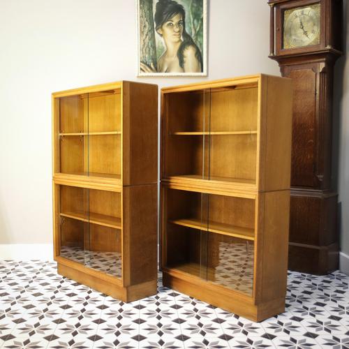Pair of Bookcases Oak & Veneer Glazed Doors Adj Shelves 1953 Kean & Scott