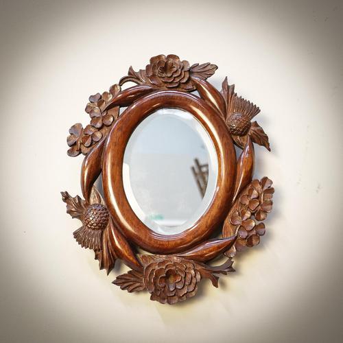 A Pair of Hand Carved Mahogany Mirrors with Thistle, Rose and Shamrock Design