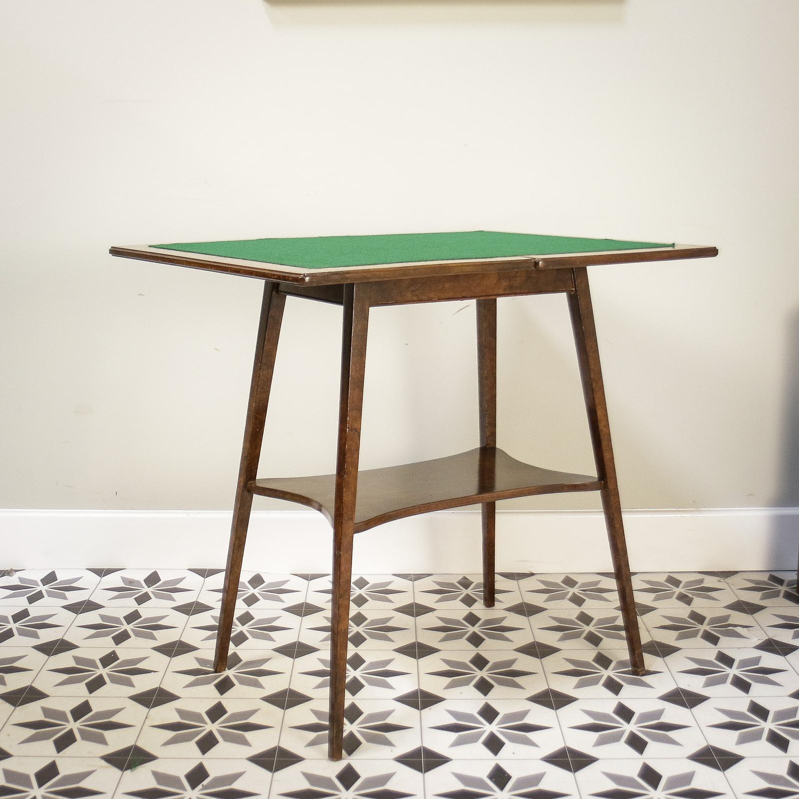 Fold over card table, in lovely condition, solid in construction with just scuffs and marks commensurate with age and use. See images.